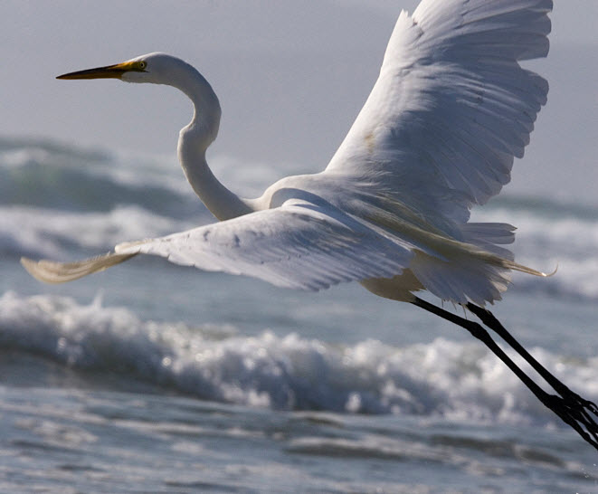The Life of Animals | Great Egret | The heron Great Egret is a large all-white plumage. It is only slightly smaller than the Great Blue Heron or gray (A. cinerea). Apart from size, the Great Egret from other white egrets by its yellow bill and black legs and feet can be distinguished, even though the bill may become darker and legs lighter in the breeding season. Men and women are equal in appearance, young, non-breeding adults. Differs Intermediate Egret (Mesophoyx intermedius) through the open mouth, which extends well beyond the back of the eye in the Great Egret, but ends up just behind the eye in the case of Intermediate Egret.